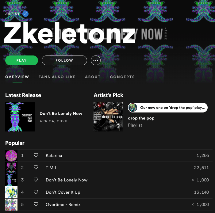 As you can see below, friend of Talk About Pop Music, Zkeletonz have added our playlist ‘Drop The Pop‘ as their ‘Artist Pick’…
