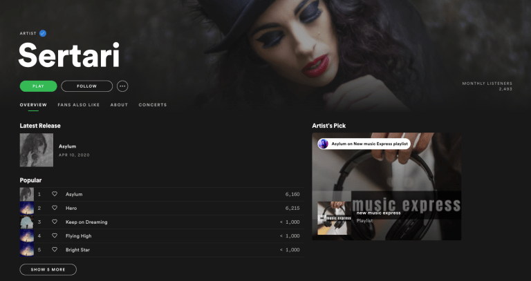 As you can see below, friend of Talk About Pop Music, Sertari has added our playlist ‘New Music Express‘ as their ‘Artist Pick’…