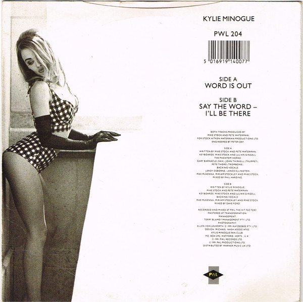 Kylie had barely put the “Rhythm Of Love” era to bed when just two months on from “Shocked”, she brought out a brand new song, “Word Is Out”. Much had changed behind the scenes at PWL Records in that period of time that perhaps precipitated a new song and a new album so soon. The most notable being the departure of songwriter Matt Aitken from the award winning hit makers, leaving just Mike Stock and Pete Waterman to continue to write, produce and develop their artists. They too were changing by the week. Sonia had gone, Jason was leaving and both Yell and Big Fun had fizzled out after barely a year in the limelight.